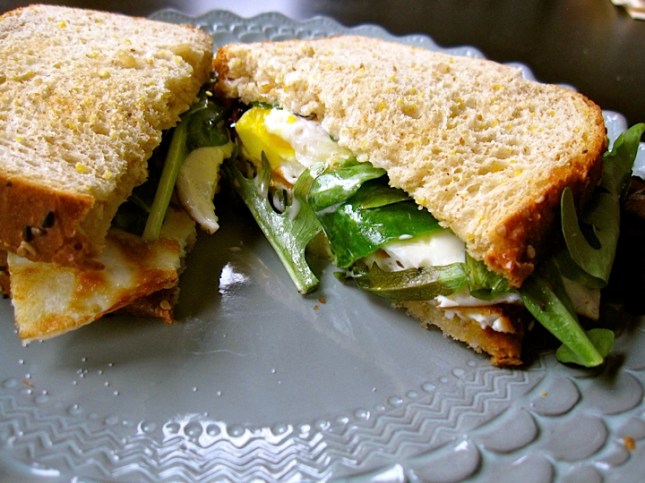 So on days when I find myself longing to feel a little less overwhelmed and a little less lost I do what feels most comfortable and natural. I walk into my kitchen and get to cooking something. Something that’s comfy and cozy and that I just want to hold hands with. Like a fried egg sandwich. Covered in perfectly salty Manchego cheese and wilted baby greens and, well, mayo. Don’t judge.
