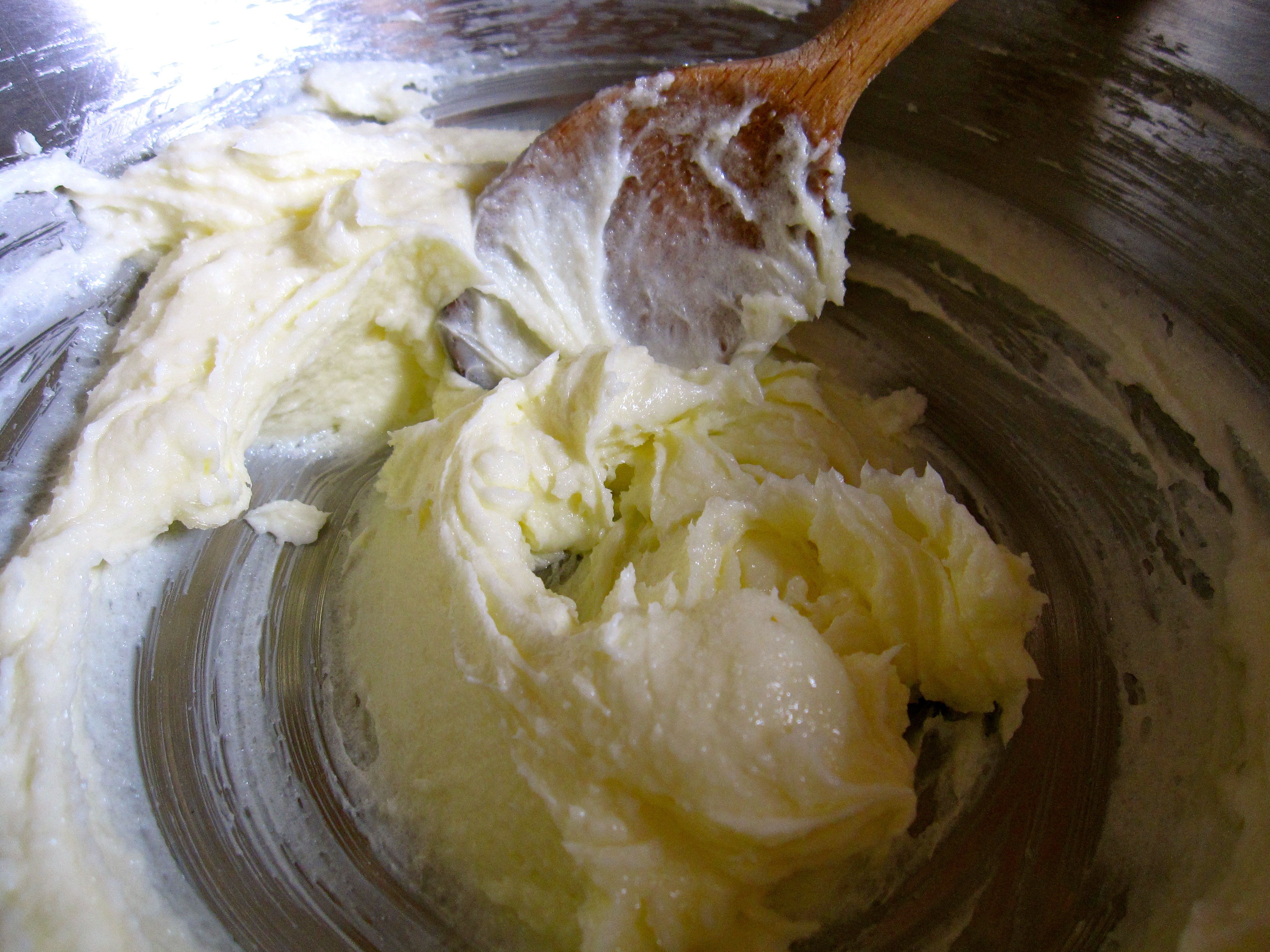 3. In a large bowl, using a wooden spoon, blend together the butter and sugar until the mixture is light and fluffy.